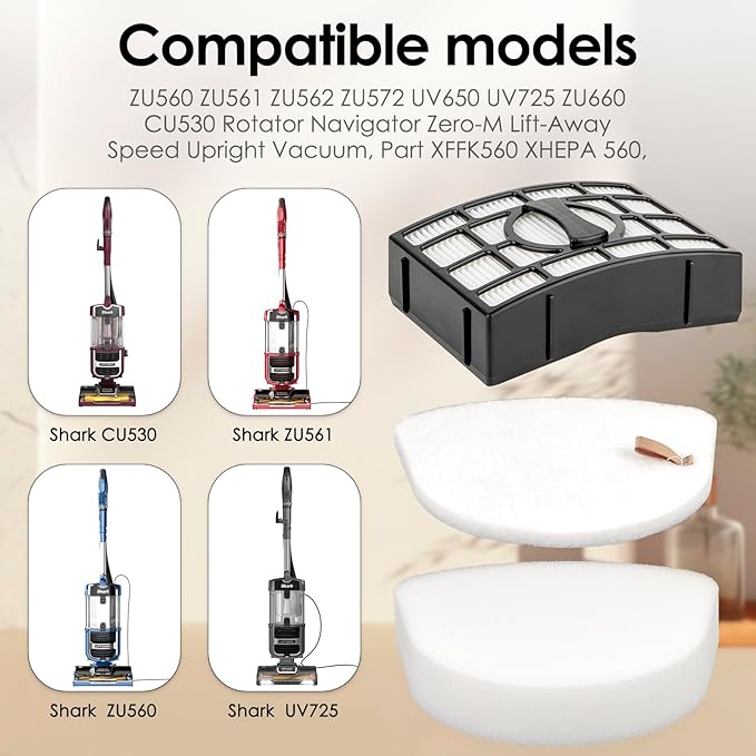 - 【Perfect Compatibility】 Compatible with Shark Navigator Zero-M Speed Upright Vacuum ZU560, ZU560C, ZU561, ZU561A, ZU561C, ZU561QBK, ZU561QBL, ZU561QRD, ZU562, ZU562NP, ZU570, ZU571, ZU572, ZU660. Compatible with Shark Navigator Lift-Away Upright Vacuum UV650, UV725, CU530, NV431, QU573QBL, QU573QGN, QU573QRD, QU573QS, UV572CCO, UV725BXBRN, UV725CCO, ZD201. Compare to Parts XFFK560 & XHEPA560. Please make sure your model is correct before order.