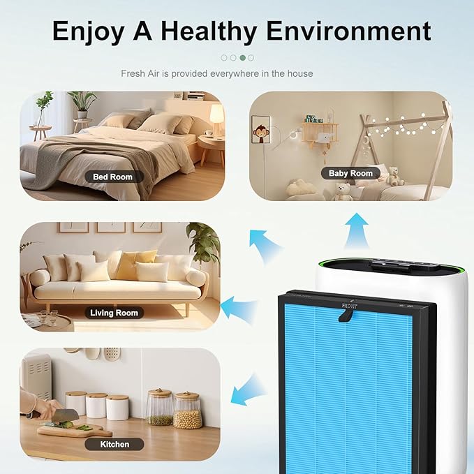 - Advanced True HEPA Filtration: Harness the power of our advanced True HEPA filtration technology. The Luripid MKD05 blue air filter captures 99.97% of microscopic airborne particles, including dust, pollen, pet dander, and smoke particles as small as 0.3 microns
