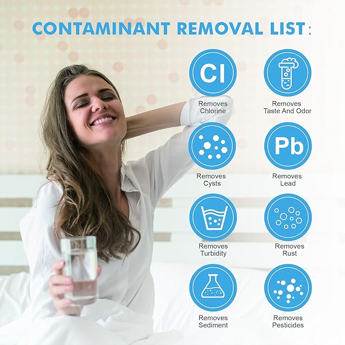 - NSF Certified: Undergone rigorous testing and certification by NSF/ANSI 42, experience remarkable water quality as our filter effectively diminishes chlorine, sediment, and other impurities.