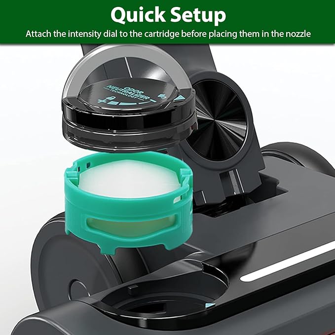 - Easy to Install: No other tools required, align the arrows on the cartridge with the arrows on the nozzle, insert the odor neutralizer cartridge, and rotate the intensity dial to your preference.