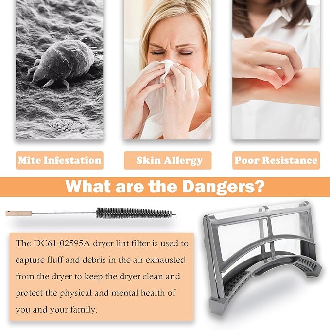 - 👍【Package included】DC61-02595A dryer lint filter replacement*1、lint brush for dryer lint trap*1,If you have any questions, please contact us.