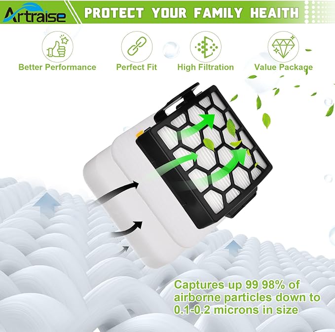 Artraise Filter Replacement for Shark NV255 NV251 NV151 ZU62 ZU60 ZU51 Navigator Zero-M Self-Cleaning Brushroll Pet Pro Vacuum, Part #1238FT60 & 1239FT60, 2 HEPA Filters 6 Foam 6 Felt Kit (Black)