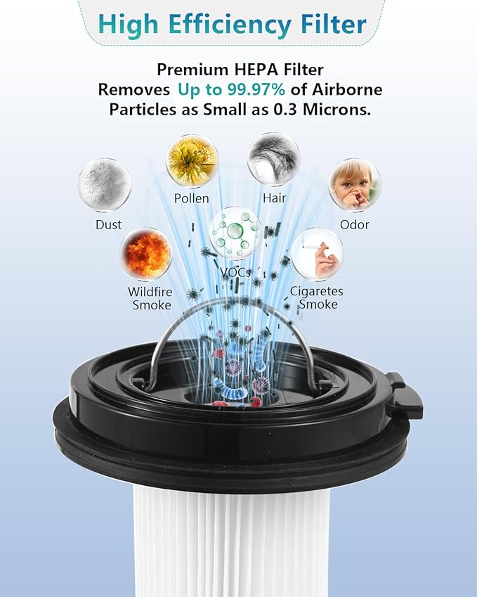 - 【Premium Material】 The filter is made of high-toughness HEPA Pleated filter paper and ABS material, designed for use with vacuum cleaners, effectively blocking up to 99.97% of fine dust, including tiny particles and pollen down to 0.3 microns.