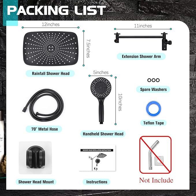 - 【12" Rain Shower Head】 MEKMGI make excellent rain shower system. The 12" lightweight ABS rain shower head provides full-body coverage while resisting corrosion. Compared to metal, the ABS material has higher safety. Thethe 360° ball joint adjusts effortlessly – ideal for high-pressure rinsing of pets, shower walls, or children’s hair. Soft silicone nozzles can prevent lime scale build-up, resistant to clogging, easy clean.