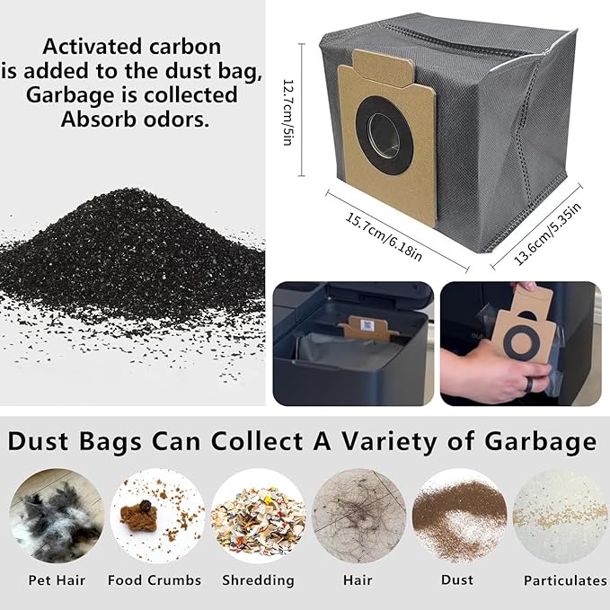 - Large Capacity & Activated Carbon Filter with Odor Neutralizing Function: The spacious dust bag reduces the frequency of replacements and is also leak-proof and tear-resistant. The multi-layered filter structure with activated carbon effectively traps fine dust and neutralizes unpleasant odors.