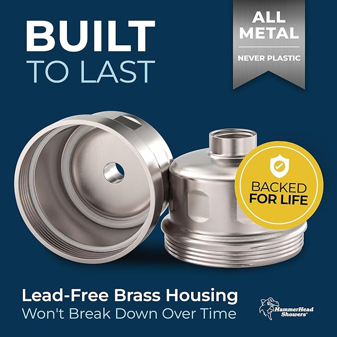 HammerHead Showers® Solid Metal Shower Head Filter – KDF 55 Shower Filter, High Pressure Universal Shower Filters to Remove Toxic Chemicals – Removes Chlorine and Heavy Metals – Brushed Nickel