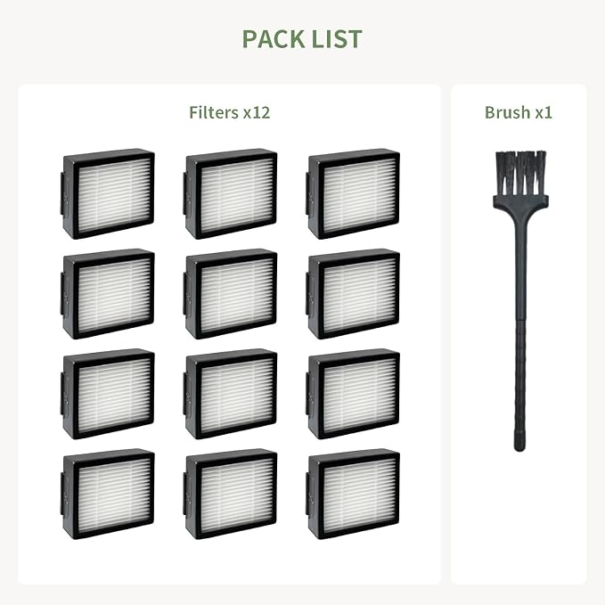- {Package Includes}: 12 pieces of iRobot Roomba i j e series Robotic vacuum cleaner filter, compare to parts 4639161, with a useful filter cleaning brush.