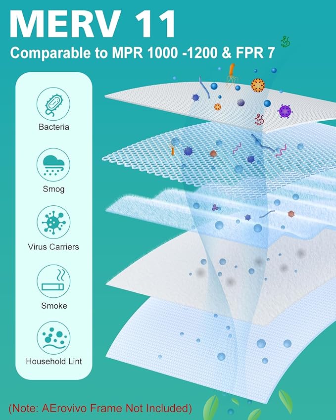 16x20x1 Air Filter Refills, 4 Pack MERV 11 Refills Only for AErovivo Reusable ABS Frame (Not Included) - Last Up to 3 Months