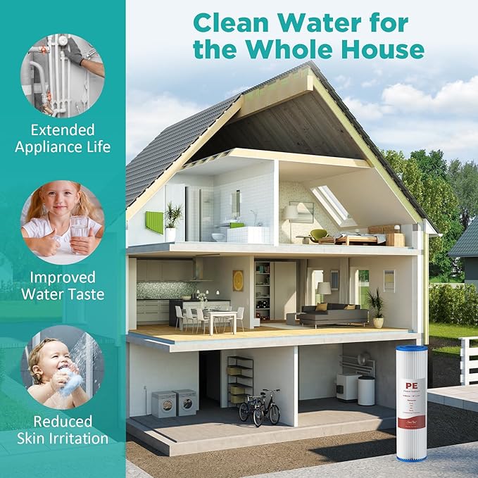 - [Protect Your Water System] - Serving as the first line of defense in your filtration system, this pleated filter helps prevent your plumbing and appliances from sediment buildup and potential clogs. While itβs not designed to remove chlorine, it significantly enhances the longevity of your water equipment and ensures consistent, high-quality water flow.