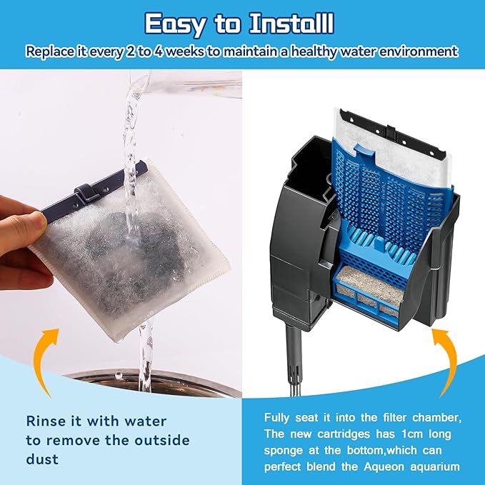 - 【Four-Stage Filtration】The filter is made of dense dual-sided mesh, the better the filtration effect. With 25% more active activated carbons and zeolites are added to effectively filter and absorb impurities in water, maintain a clean water source, and provide a healthy growth environment for fish.