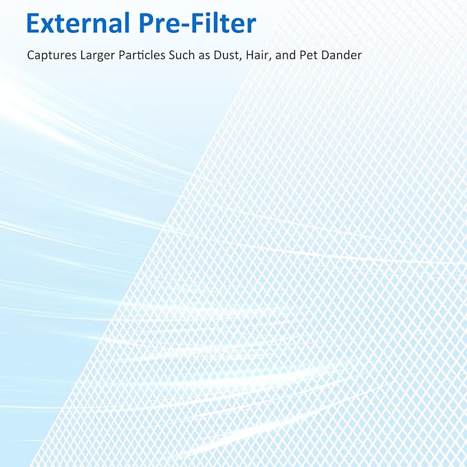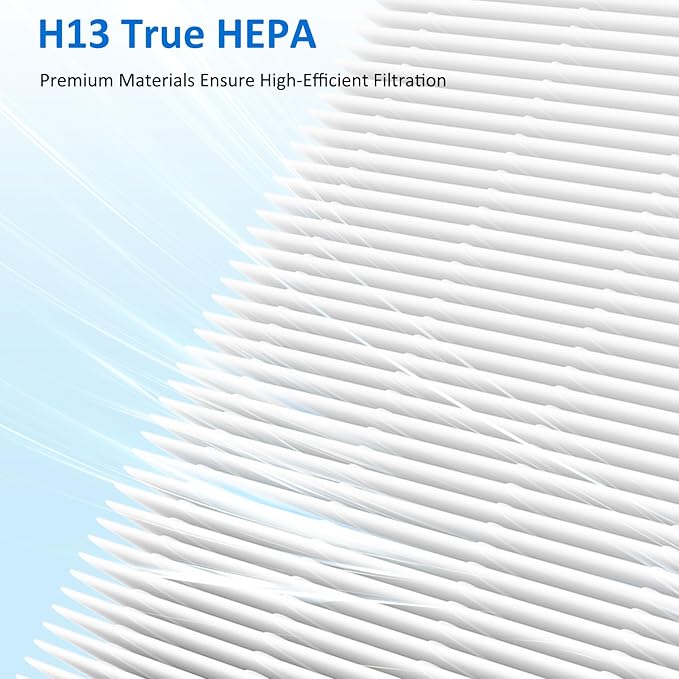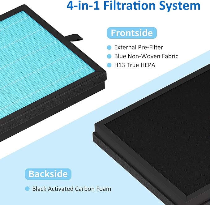 - True HEPA Filtration: Benefit from H13 Grade True HEPA filtration that captures 99.7% of microscopic airborne particles as small as 0.3 microns. Combined with an activated carbon layer, it effectively eliminates odors and gases, ensuring a fresher, cleaner atmosphere.