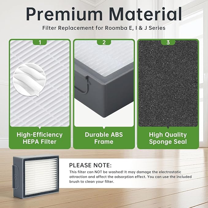 - Easy to Install & Maintain: These vacuum parts are washable and reusable, clean Roomba parts regularly to improve suction power and extend service life. For best results, multi-surface rubber brushes should be replaced every 2 months, and edge sweeping brushes and filters should be replaced every 2 months