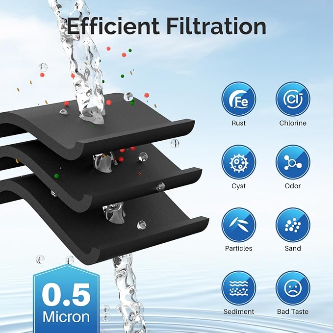 - [Quick & Tool-Free Installation] Designed for an effortless setup in minutes. Includes installation stickers and instructions. Replace your filter every 6 months or 300 gallons for the best filtration results.