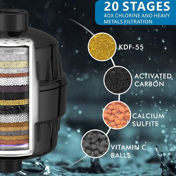 - REPLACEABLE CARTRIDGES - 20 stage formula filters water to help with dry skin, rough hair and itchy skin. Enjoy 4-6 Months of filtered soft water per replacement Cartridge.