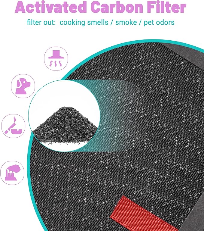 - Pet odor filter (2-pack): Activated Carbon filter deal with unwanted smell from the air that passes through the filter