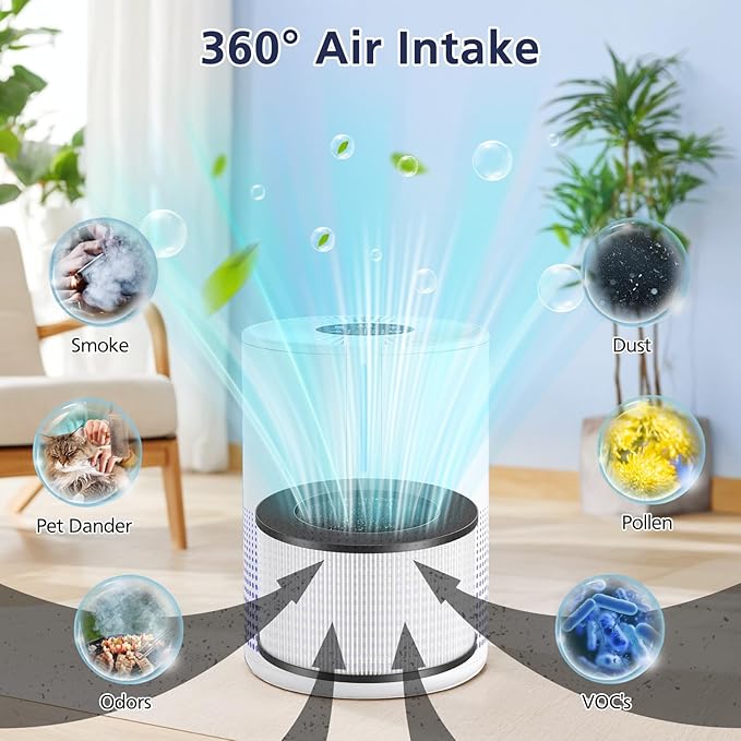 - 𝗛𝗘𝗣𝗔 𝗙𝗶𝗹𝘁𝗲𝗿: The air filters for MOOKA M01 Air Puri-fier are made of HEPA material, which effectively attaches at least 99.97% of airborne particles as small as 0.3 microns, such as pets dander, fine dust, pet hair. Keeping fresh air in your home or office throughout the day