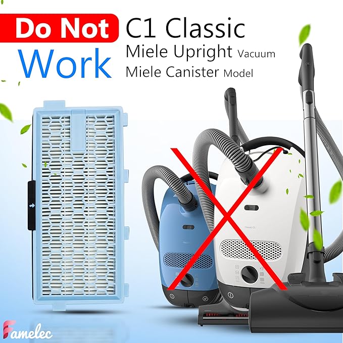 - ✔️✔️✔️ Perfectly Compatible with : the vacuum cleaner replecament for Miele c1 for the air clean 50 for hepa filter is compatible with Compact C1, Compact C2, Complete C2, Complete C3, S4, S5, S6, S8, S8000, S8999, S6000, S6999, S5000, S5999, S4000, S4999. (DOES NOT WORK with Classic C1 model)