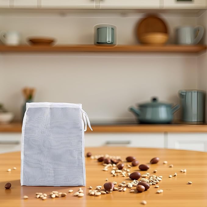 1Pc White Nut Milk Bag Reusable Cheesecloth Bags For Straining Almond Soy Milk Strainer For Cold Brew Coffee Tea Beer Juice Fine Nylon Mesh Cheese Cloth Colanders and Food Strainers