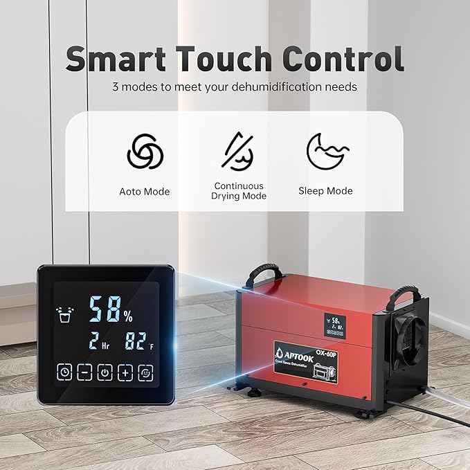 - Adjustable Humidity Control & Effortless Remote Operation: This crawl space dehumidifier allows you to easily adjust your preferred humidity level (20% to 95%) using its built-in sensor and digital panel. Equipped with a user-friendly touch panel and a 32.8 feet extension cord, you can conveniently control it remotely for added flexibility and convenience.