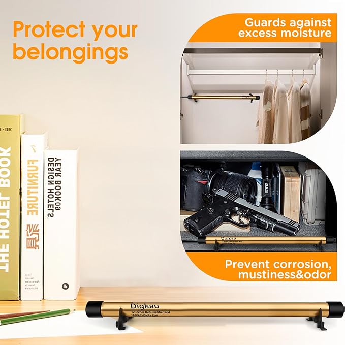 - Advanced Moisture Control: The DIGKAU Electric Dehumidifier Rod is expertly designed to keep the humidity at the ideal level in your gun safes, cabinets, and other closed spaces. With a high power output, it ensures your firearms, ammo, documents, and other precious items stay dry by slightly increasing the surrounding temperature to remove excessive moisture