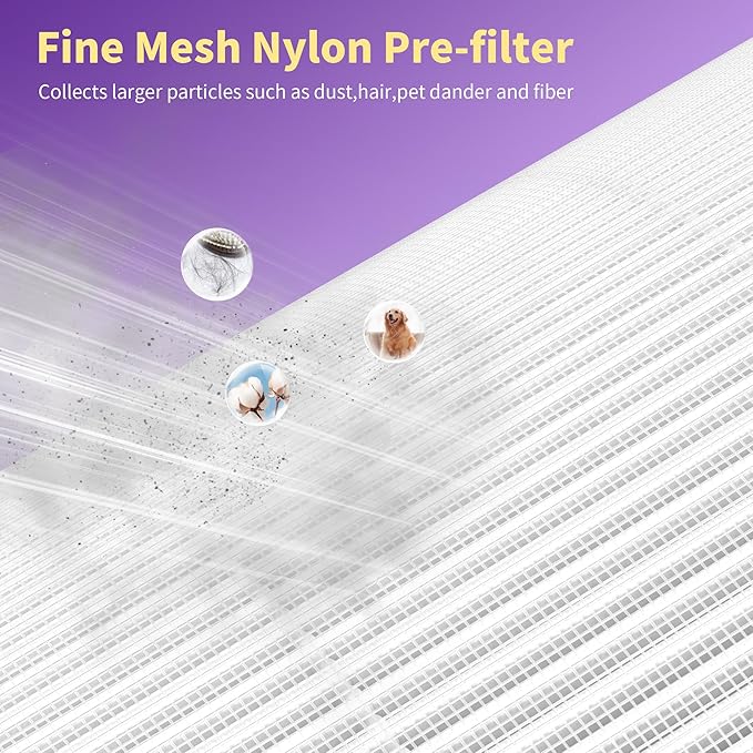 - 3-Stage Filtration System: Our AP100-A replacement filter features a high-efficiency 3-in-1 filtration system, including an ultra-fine pre-filter, premium filter and activated carbon filter. Which helps to absorb particles such as hairs, pet fur, and lint and extend the life of the premium filter for your unit. keeping the air clean all the time.
