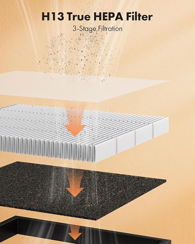 - High Performance Filtration: Our H13 True HEPA filter provides powerful filtration, with 99.97 percent efficiency in effectively filtering out particles such as smoke, pollen, pet dander and hair. ( Tested by an independent lab. )