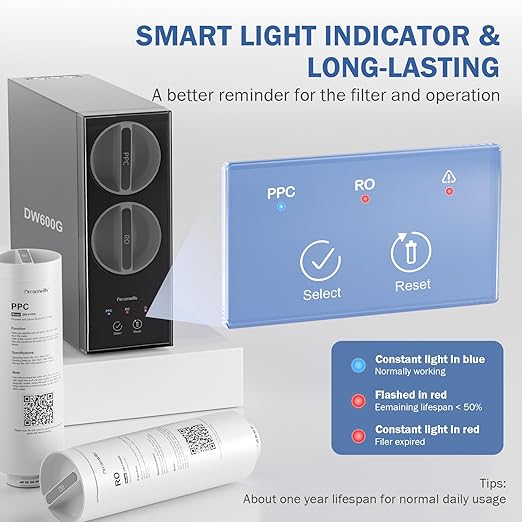 - 【8-Stage Filtration】 The Dreamwills DW600G uses an advanced 8-stage filtration system, including a 0.0001 micron reverse osmosis membrane. This purification system can reduces over 1,000 harmful contaminants from your water, such as chlorine, chloramine, lead, and various heavy metals. Experience pure, great-tasting drinking water that supports your health with the DW600G!