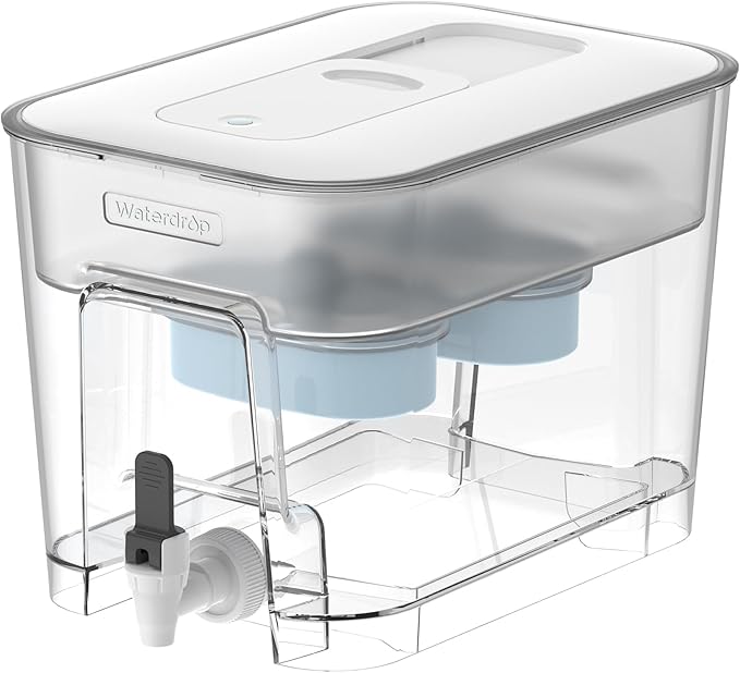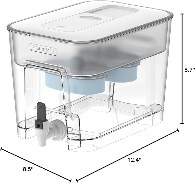 - [Fashionable And Large Capacity]: Redefine your hydration routine with Waterdrop's 40-cup water filter dispenser, marrying style and substance.(ā”19 cups in the body) Enjoy a double dose of freshness with our innovative dual-filter system ā introducing a quicker flow rate and prolonged filter life.