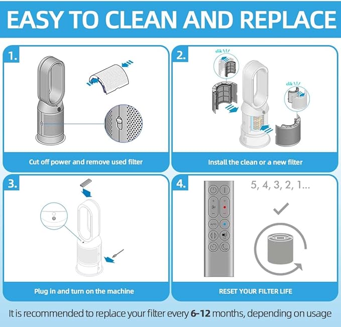 - 【IMPORTAND REMINDER】: This air filter replacement is NOT COMPATIBLE WITH Dyson HP00, HP01, HP02, TP01, TP02, TP03, AM11, BP01, DP01, DP02. Please carefully check the model on the bottom or side of the air purifier before placing an order