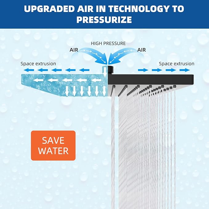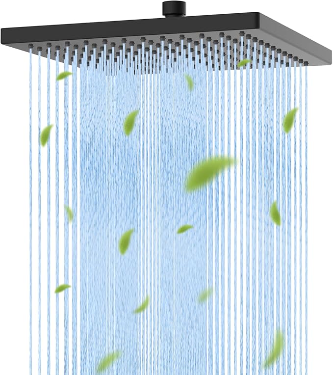 - High Pressure Shower Head: The Hibbent 10-inch shower head, with its air-in technology, provides a luxurious rain-like spray that envelops the body in a soothing, enveloping downpour. This dynamic, high-pressure massage experience is delivered even at low water pressure levels, while the black finish adds a sleek, modern elegance to your bathroom's decor