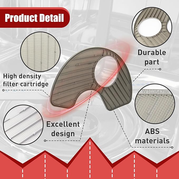 - Improve Performance: For Whirlpool dishwasher filter replacement has strong durability and excellent filtering effect. You can improve the performance of the equipment by replacing this high-quality and reliable for dishwasher filter whirlpool