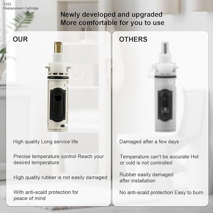 - 【EASY INSTALLATION】Our Replacement Cartridge replacement provides a quick and hassle-free replacement for Moen Posi-Temp tub shower and shower faucet only configurations. You do not need to replace the entire unit. In just a few simple steps, you can simply replace your old shower cartridge with a new 1222 cartridge.
