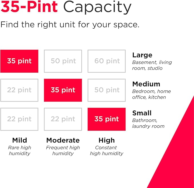 - Energy-Efficient Performance: This Energy Star-certified dehumidifier uses less energy to deliver powerful humidity control, helping you reduce energy usage and lower your utility bills