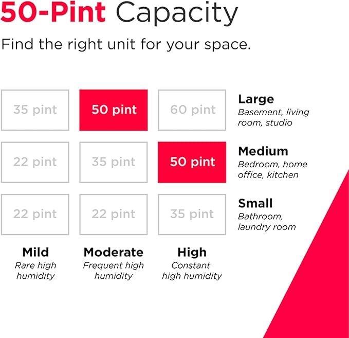 - Energy-Efficient Performance: This Energy Star-certified dehumidifier uses less energy to deliver powerful humidity control, helping you reduce energy usage and lower your utility bills
