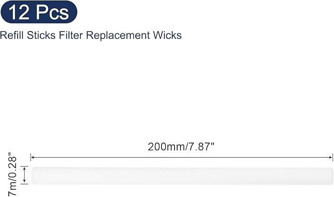 - Filter Sticks Size: 7 x 200mm / 0.28" x 7.87"(D*L). You can cut it to fit with your diffuser/humidifier if necessary. Be sure to confirm the size of the water wick before purchase