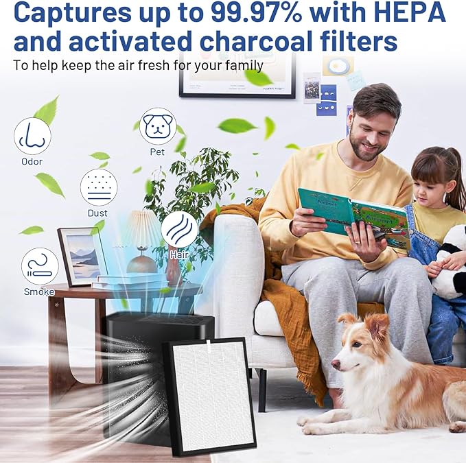 - 3-IN-1 FILTER FILTRATION: Our TZ-K2 replacement filter is high-efficiency 3-in-1 true HEPA filtration systems, including fine preliminary filter, H13 true HEPA filter and activated carbon filter. They can capture up 99.97% of all airborne particles down to 0.3 microns in the air like dust, hairs, lint. Activated Carbon Filter assists in neutralizing smoke and car exhaust. To provide you and your family with fresher air
