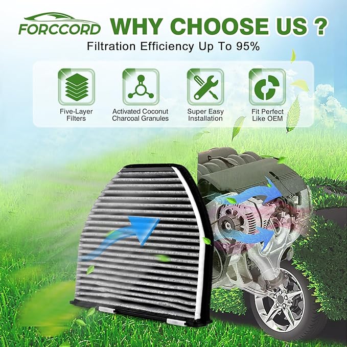 - 【5 Layers Newly Material】Compare with Standard cabin air filter, we adopts a newly upgraded large-capacity five-layer blue silk filter cloth+melt blown cloth, Double layer HEPA filter,which can remove 99.9% of harmful pollutants(dust, pollen,exhaust, etc).