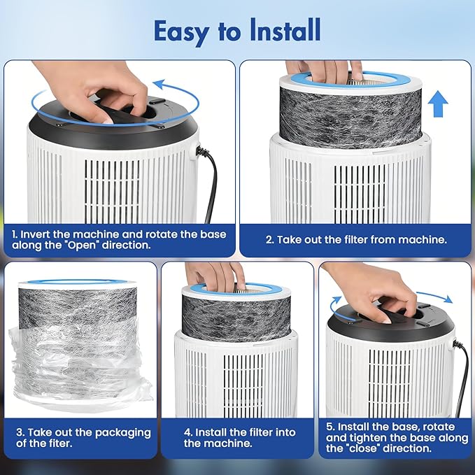 - 【Easy to Replace】The replacement filter installation is very convenient, without the need for other tools, just remove the old dirty filter and put the new filter in. Attention: Please remove the new filter from the plastic bag before placing it in the bag.
