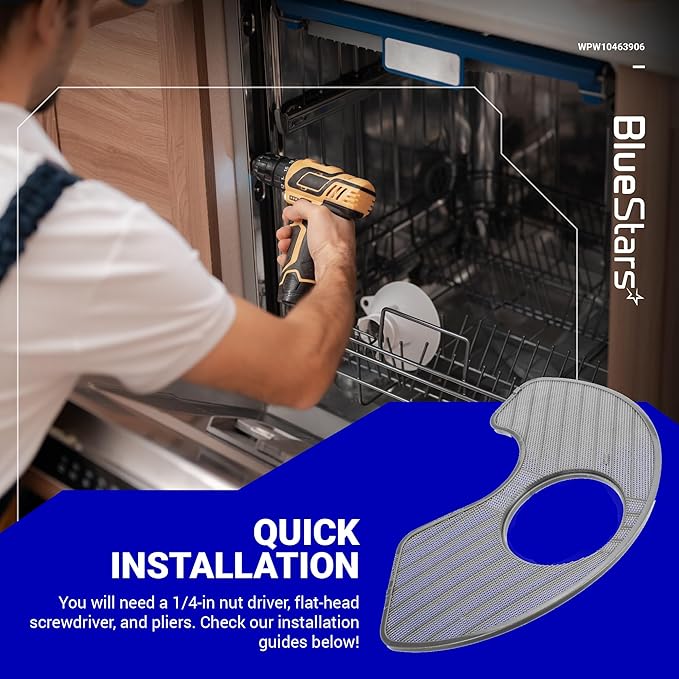 - 𝐄𝐟𝐟𝐨𝐫𝐭𝐥𝐞𝐬𝐬 𝐈𝐧𝐬𝐭𝐚𝐥𝐥𝐚𝐭𝐢𝐨𝐧: Please disconnect the power & water supply before repairs. Please check our installation guides below. For optimal dishwasher performance, the screen filter needs to be cleaned regularly. It’s advised to check & replace it every 6 or 12 months up to your cleaning frequency.