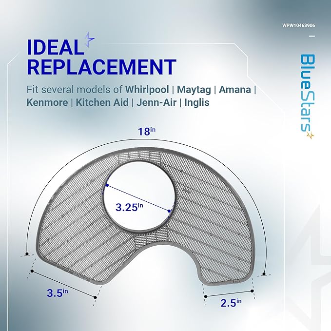 - 𝐏𝐞𝐫𝐟𝐞𝐜𝐭 𝐌𝐚𝐭𝐜𝐡: This Screen Filter replaces part numbers: #WPW10463906, W10463906, WPW10195360, W10195360, 2312301, PS11755148, EAP11755148, AP6021820. It is compatible with specific models of top-name brands: KitchenAid, Maytag, Whirlpool, Jenn-Air, Kenmore, Amana, Magic Chef, Admiral, Roper, Norge (detailed Fit Models list below)