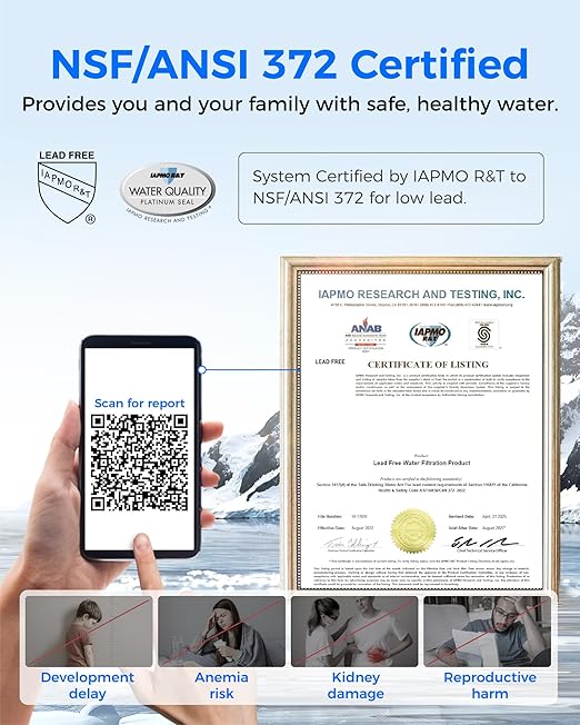 - ðððŦððĒððĒðð ðððð ðððŊððŦðŽð ððŽðĶðĻðŽðĒðŽ ðððððŦ ð ðĒðĨðððŦ: IAPMO R&T certified to NSF/ANSI 372 standards for lead-free materials, our installation-free RO system offers more than just filtration â it's a promise of cleaner, healthier hydration.