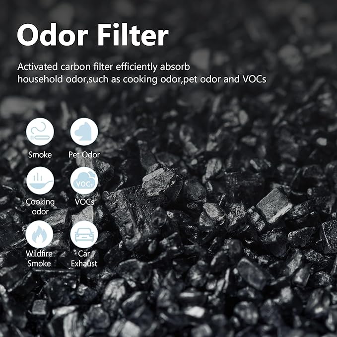 - 【Activated Carbon Filter】The activated carbon filter layer helps to absorb household odors such as cooking odors,pet odors,smoke and VOCs