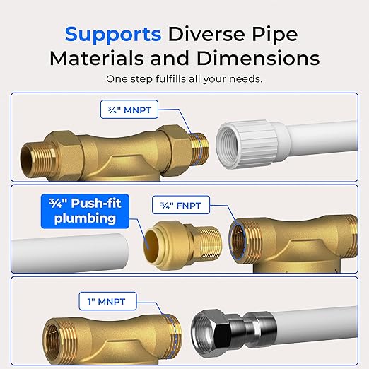 - 【NSF372 Certified, Safe Materials】 NSF/ANSI 372 certified and lead-free, this whole house filter ensures safe, healthy water. The high-grade housing is BPA-free, making it safe for families and babies. The copper fittings are coated with a strong, corrosion-resistant blue nano-coating, which helps prevent the release of harmful metals, ensuring your water stays safe.