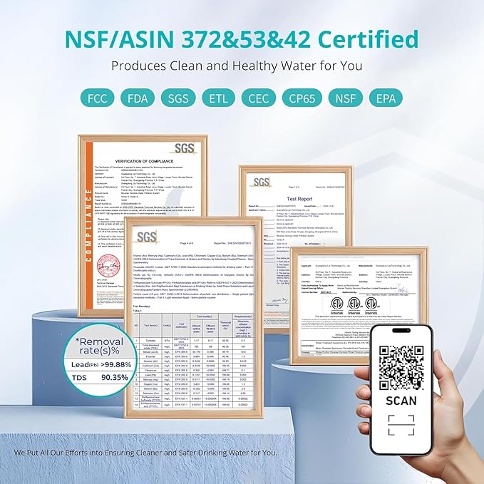 - [Reduce TDS & PFOA/PFOS] Our 9-stage reverse osmosis system effectively reduces a wide range of contaminants, including TDS, PFOA, PFOS, chlorine, lead, and microplastics. With a 0.0001μm filtration precision, you can trust every drop. (Tested by SGS).
