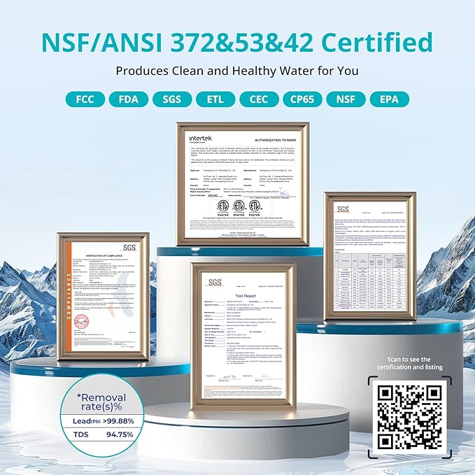 - [9 Stage Filtration System & Tested by GSG] Viomi reverse osmosis water filter features a 0.0001μm membrane for superior purity. SGS Certified to NSF/ANSI standards 372, 53, and 42, it's proven to reduce PFAS contaminants like lead, fluoride, and PFOA. Enjoy exceptional purity with a TDS reduction of up to 94.75% and PFOS/PFOA reduction of up to 99.60%.