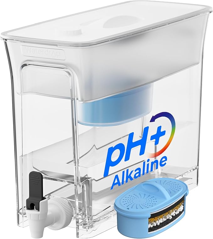 Waterdrop Slim Alkaline Water Filter Dispenser, 35-Cup, Large Capacity, 100-Gallon Long-Life, Faster Filtration, Reduces Chlorine, PFOA/PFOS and More, BPA Free, White (with 1 Filter)