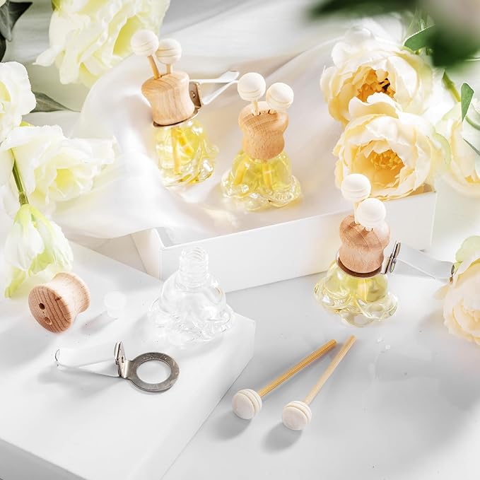 Zubebe 30 Pack Car Air Freshener Diffuser with Vent Clip Empty Car Diffuser Bottles for Essential Oil Perfume Glass Bottle with Wooden Caps Stick(Flower)