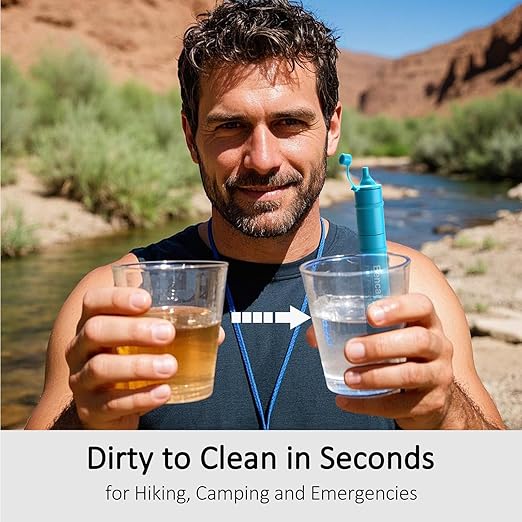 - Essential for Camping, Survival & Emergency Water Filtration: This lightweight, compact water filter straw is a must-have survival kit essential for outdoor adventures, emergency preparedness, and disaster relief. Whether you're camping, hiking, or facing a water crisis, it ensures access to clean, purified water anytime, anywhere. An ideal choice for any survivalist, prepper, or adventurer!