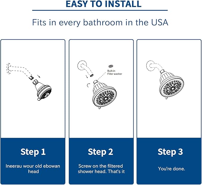 - Universal Fit for Any Bathroom – Compatible with standard ½-inch shower pipes (G1/2" thread), 5.5-inch shower head blends seamlessly with any bathroom decor.Note: When installing, replacing or opening the shower filter, please tighten the shower head. Otherwise, water leakage may occur.