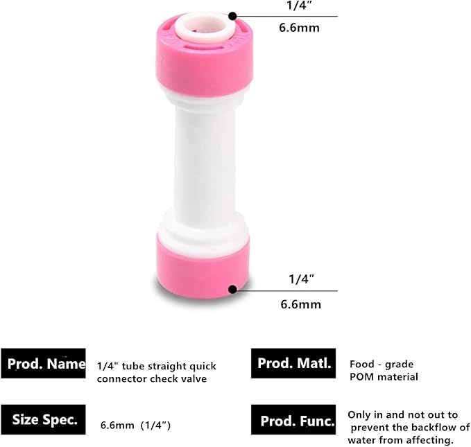 - ★FUNCTION AND QUALITY: The 1/4" tube straight quick connector check valve is suitable for all water purifiers, filters, and reverse osmosis systems. It's extremely easy to use. Our quality system guarantees a superior level of product quality.